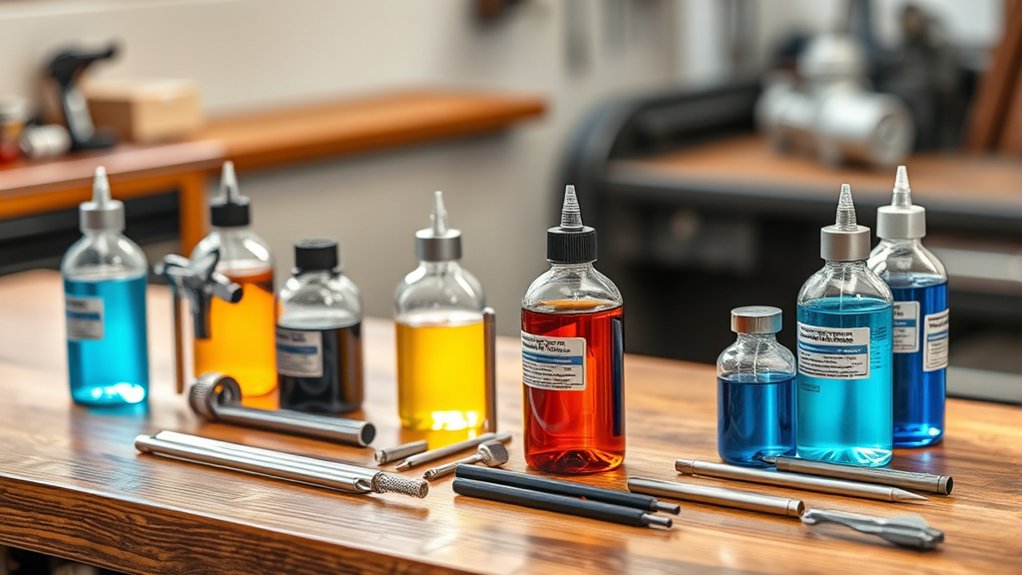 Kits often come with cleaning agents, degreasers, and rust removers to prep your metal surfaces thoroughly. Essential tools like heating equipment or immersion tanks are key for maintaining the correct temperature during bluing.