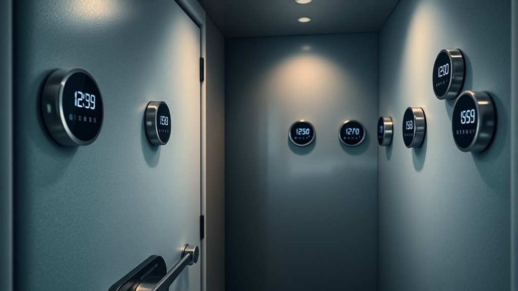 Some hygrometers let you customize alert settings, letting you define precise humidity or temperature ranges for your storage needs. Quick-change triggers matter too—alerts should react to sudden humidity shifts, catching environmental issues early. A reliable alarm system helps maintain a steady, safe environment for firearms and valuables over time, reducing risk and unnecessary maintenance.