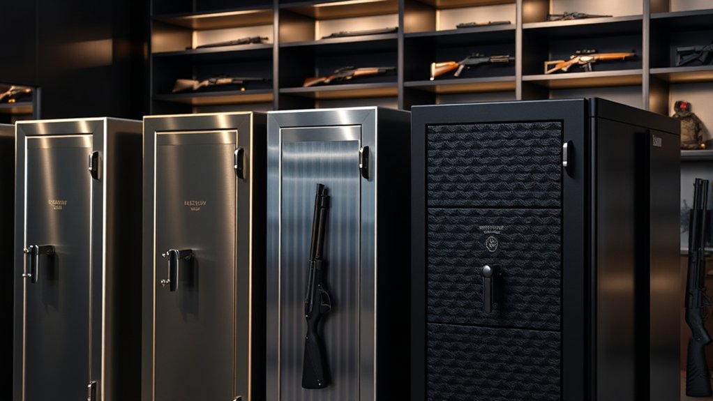 When evaluating gun safe manufacturers, understanding their warranty coverage and pricing is essential because these factors directly impact your long-term investment. Look at the warranty duration and what it covers—longer warranties usually indicate higher confidence in durability. Compare price ranges to ensure the safe fits your budget while providing key features.