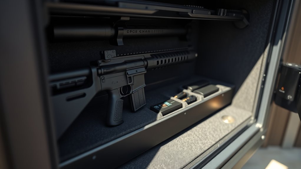 Finally, verify the materials used won’t scratch, dent, or corrode your firearms, providing safe, reliable protection tailored to your specific collection.