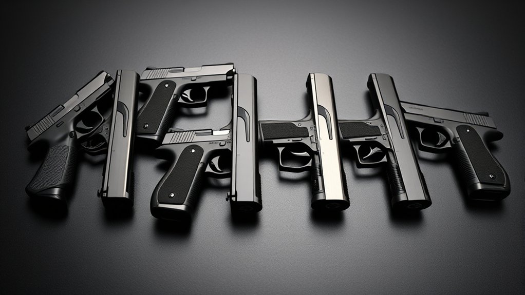 Because legal requirements vary widely, you must guarantee your handgun choice complies with all local, state, and federal laws before purchasing for home defense or concealed carry. Many areas mandate background checks, permits, and restrict certain features or magazine capacities, so staying informed is vital.