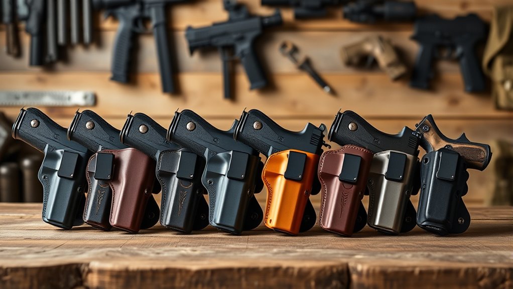 Look for adjustable retention, comfortable carry positions, and compatibility with optics or threaded barrels. Keep these essentials in mind to find the ideal holster that matches your needs and preferences as you explore your best options ahead.