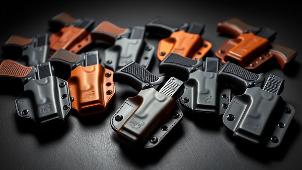 Choosing a holster with customizable retention lets you tailor the security level to your environment and activity, striking the perfect balance. Remember, overly tight retention can slow your draw, while too loose risks slippage or theft. High-quality retention systems minimize firearm loss during dynamic motions, giving you confidence that your weapon stays put until you need it.