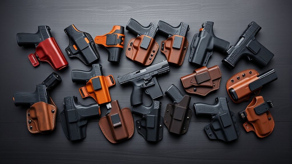 Whether you prefer IWB or OWB carry, options with quick-release clips and optic readiness offer versatility. Keep exploring to find the perfect holster that matches your carry style and needs.