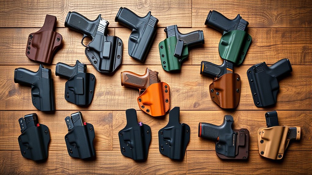 You’ll find options like passive friction, active locking systems, and trigger guard locks. Adjustable retention lets you customize how tightly the holster grips your pistol, balancing security with a smooth draw.