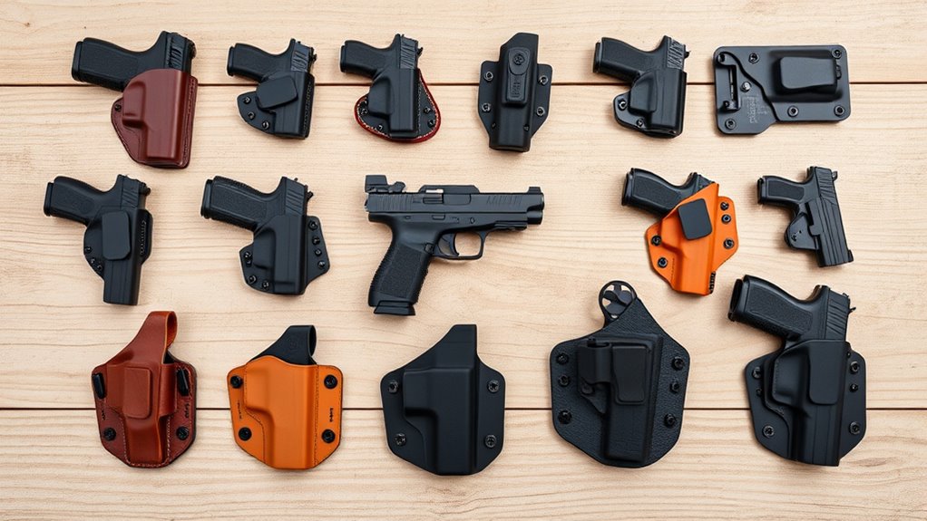 Holsters with lifetime warranties give you peace of mind by covering issues like cracking or warping. Remember, durability isn’t just about material; construction quality plays a big role. Look for reinforced edges, secure retention systems, and impact-resistant features.