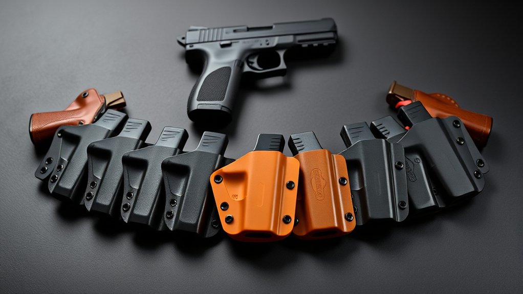 Consistent retention settings keep your gun firmly in place during movement, reducing the risk of accidental discharges. By choosing a holster with these adjustable features, you’ll enhance both safety and accessibility, making your carry experience more reliable and tailored to your needs.