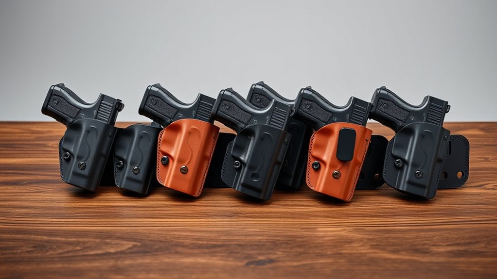 Consider OWB, IWB, and AIWB styles, plus open-muzzle designs for quick sight clearance. If you keep exploring, you’ll uncover the standout picks and why they shine.