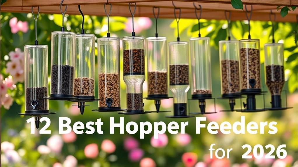 Discover the 12 best hopper feeders for 2026, chosen for durability, capacity, and bird-friendly design. You’ll find chew-proof metal models with rust-resistant coatings, cedar homes that resist decay, and Amish-made HDPE options built for outdoor use.