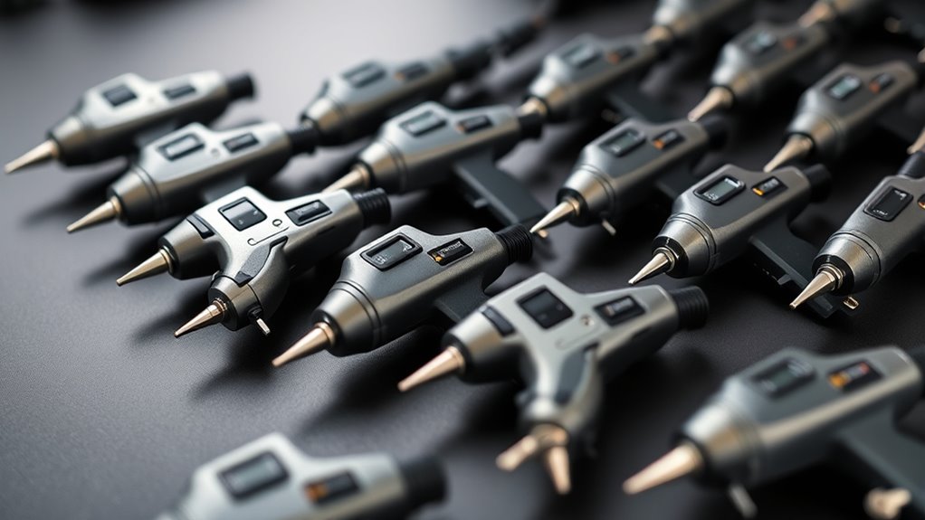 Fine-tuning airflow plays a big role in managing heat, but you’ll also want to take into account how your hot air gun uses power. Higher power consumption typically means faster heating and more effective heat transfer during soldering. However, you don’t want to waste energy or risk overheating, so selecting an energy-efficient model is key.