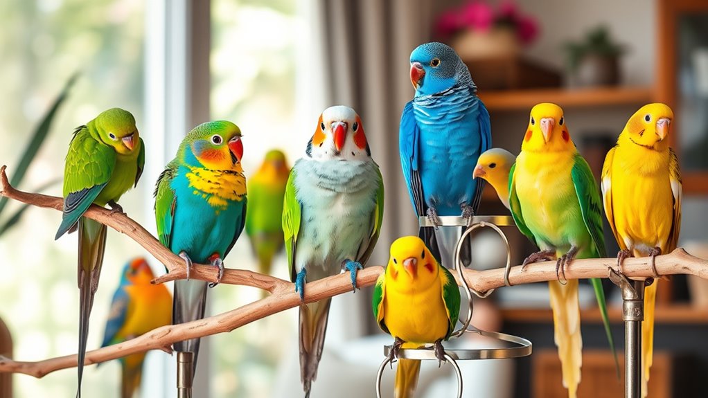 Like a garden that needs daily tending, your house bird thrives on consistent interaction—usually at least an hour each day. You’ll want to engage in talking, playing, or training to keep their minds sharp and spirits high.
