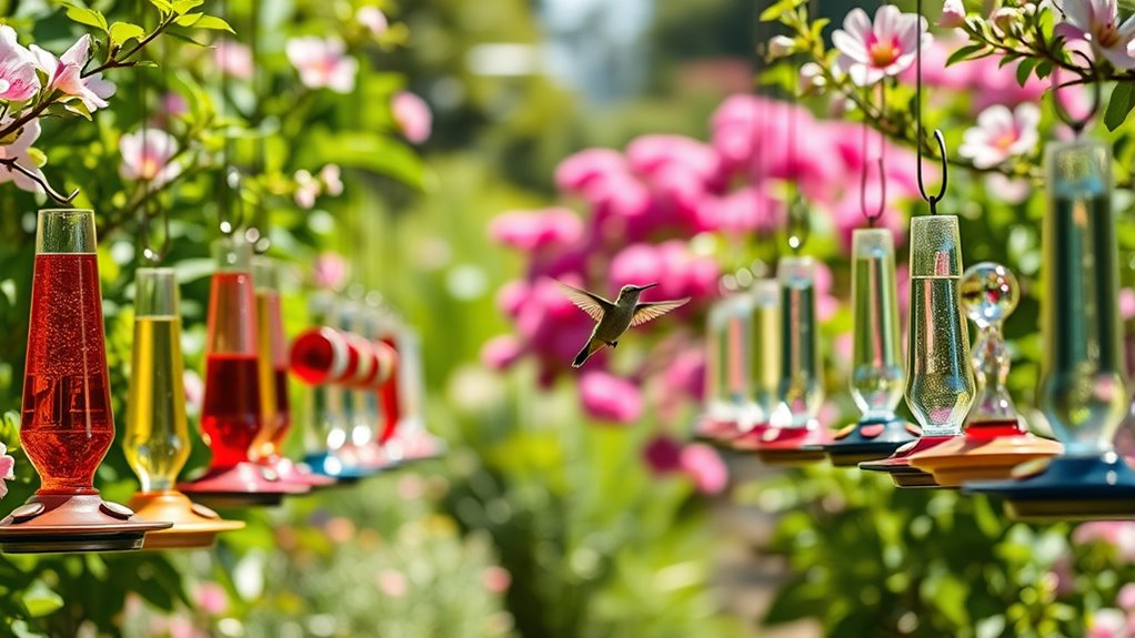 Many feature wide-mouth designs, dishwasher-safe parts, and vibrant finishes that attract birds. These picks suit small gardens or balconies and support several hummingbirds at once. See which options fit your space and budget as you explore further.