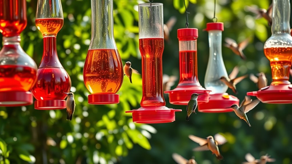 Like a cautious traveler crossing a meadow, you’ll choose a feeder that repels unwanted guests while inviting the bright travelers of nectar. Think of it as a garden compass: ants and bees are weather that you outsmart with guard rails and moat, while the hummingbirds become your faithful stars.