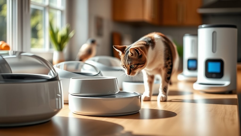 By setting portion limits and using puzzle elements, you’ll control calories while promoting consistent feeding. Regular use can reveal patterns in appetite, guiding adjustments.
