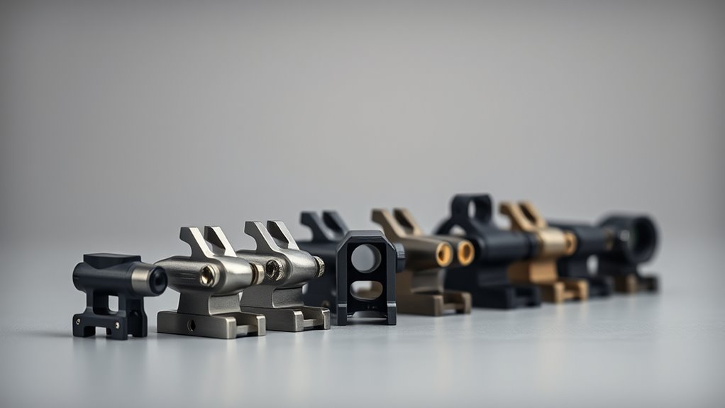 When you pick iron sights, you’ll weigh durability and material to guarantee long-term reliability, even under recoil. Consider mounting compatibility with your rails and how quickly you can deploy them in the field.