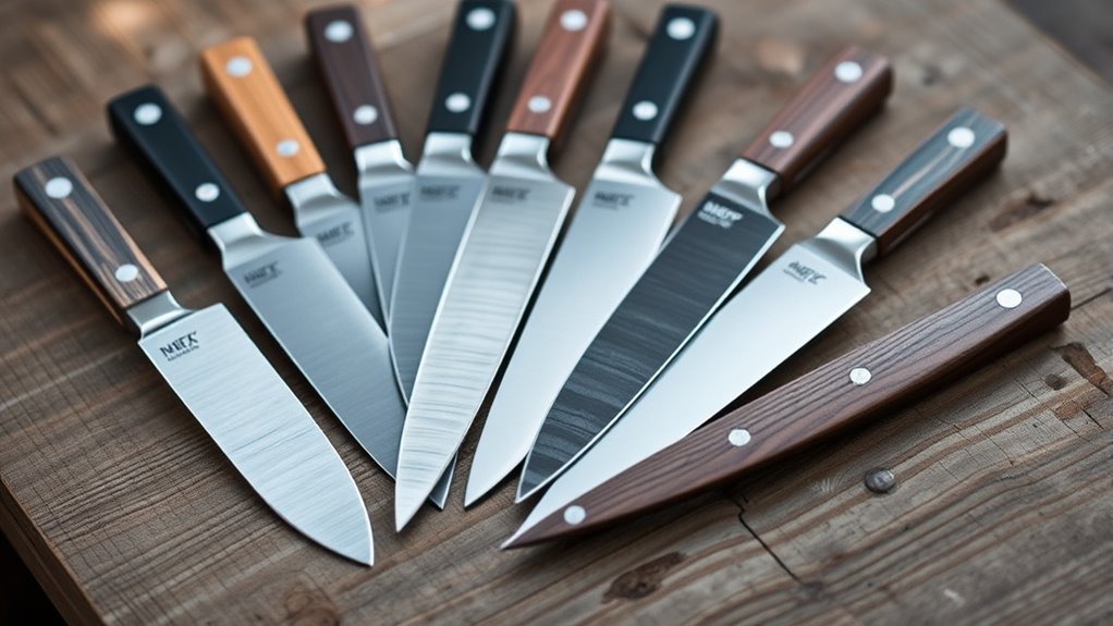 The material matters too—wood or high-carbon steel handles strike a good balance between durability and a pleasant feel. Pay attention to the handle’s length and thickness; they should allow precise control without straining your fingers or wrist. Many ergonomic designs include contours or finger grooves that match your natural grip, enhancing stability and accuracy.