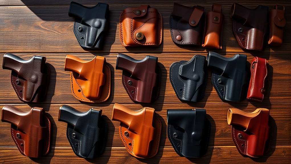 Hybrid holsters blend leather with materials like Kydex, balancing comfort and versatility across different carry methods. Your choice affects concealment, draw speed, and comfort, so consider your daily activities and preferences carefully to pick the style that fits your lifestyle best.