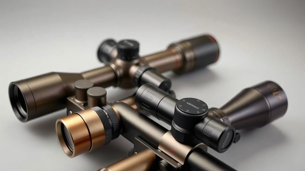 These scopes boast aluminum builds, waterproof/fogproof durability, advanced coatings, and features like CDS/ZeroLock. Each model balances brightness, clarity, and quick-adjust capabilities, with more options awaiting as you explore further.
