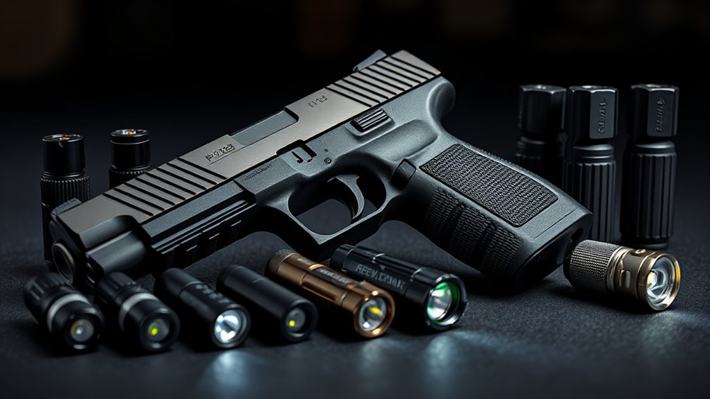 Although choosing the right light brightness for your Sig P320 M18 might seem straightforward, understanding lumens and beam intensity is essential for peak performance. Lumens measure the total visible light, with around 450 lumens fitting close-range use, while 800 lumens or more boost visibility in darker, longer-distance scenarios.