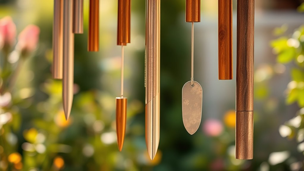 Since wind chimes live outdoors, picking weather-resistant materials guarantees your chimes maintain their tonal quality over time. Also, the density and alloy composition affect how clear and sustained those deep tones are. Finally, precise craftsmanship in tuning the tubes is essential—you want your chimes perfectly tuned to reveal their full low-tone potential.