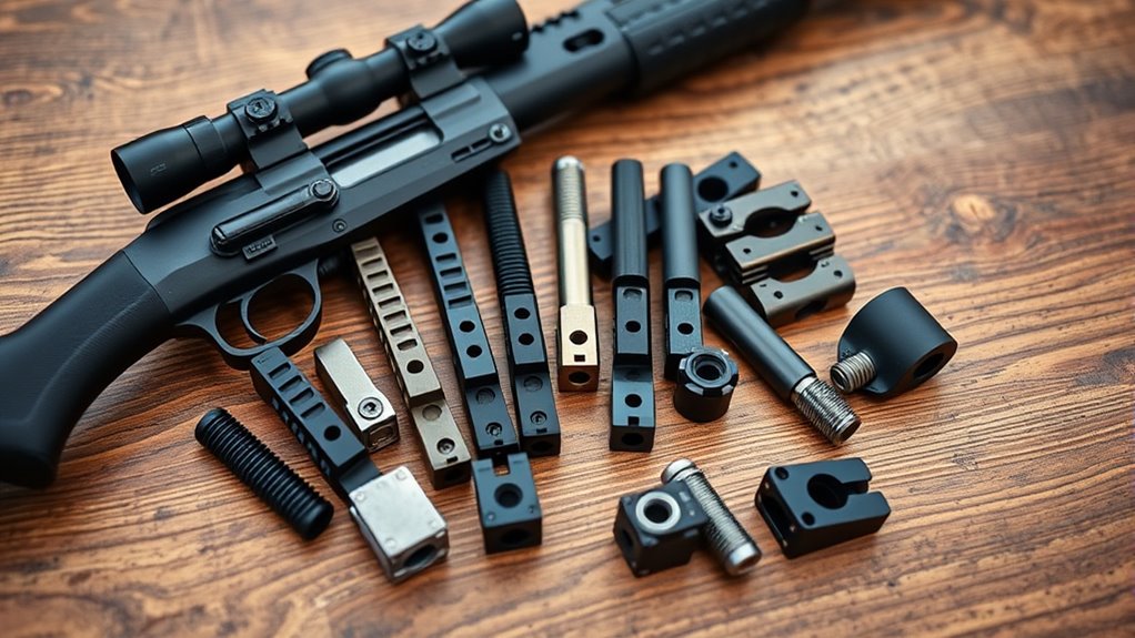 Designs emphasize recoil resistance, durability, and lightweight handling, with options like offset cantilevers and quick-detach systems. If you keep going, you’ll uncover specifics on compatibility, features, and best-use scenarios.