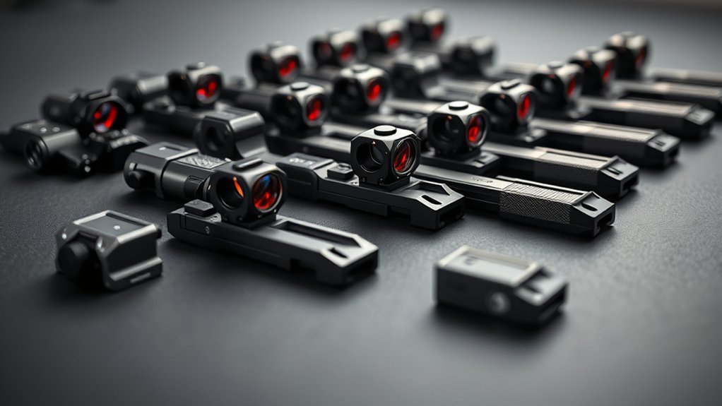 You’ll want a low-profile design to avoid interference with other accessories or optics, ensuring your setup stays streamlined. The geometry of the mount also affects how easily you can access and operate your red dot or laser, which is pivotal in dynamic situations.