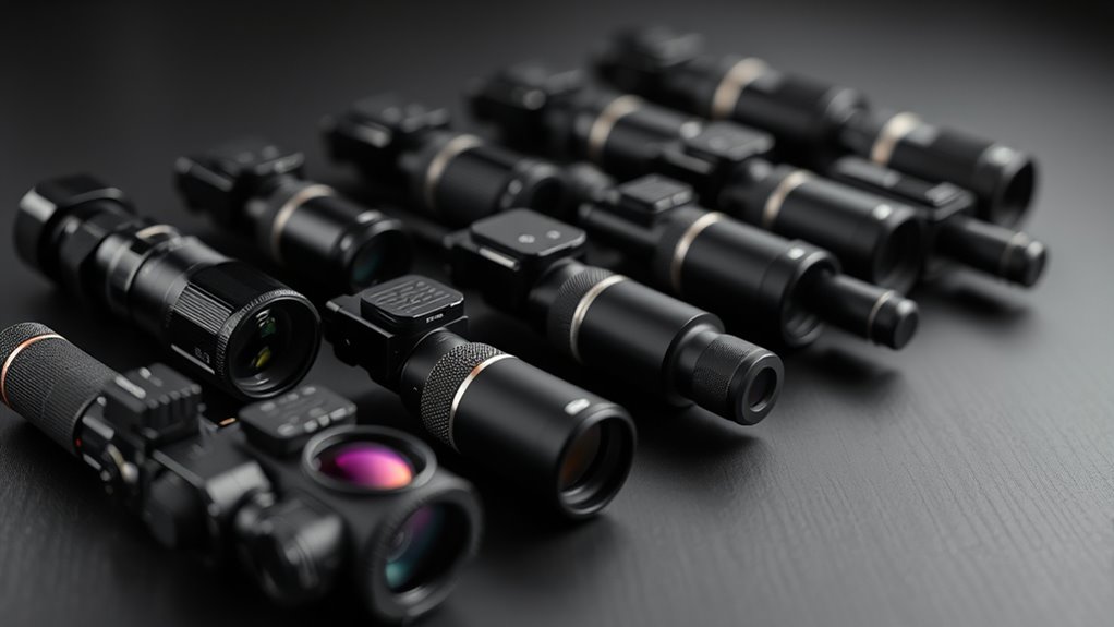 Look for quality lens coatings like multi-coating or SpectraCoat technology; they boost light transmission and cut glare, sharpening your view in low-light situations. Reticle clarity also plays a key role, with options like a 2 MOA dot or circle-dot combos that speed up target acquisition when paired with proper brightness.