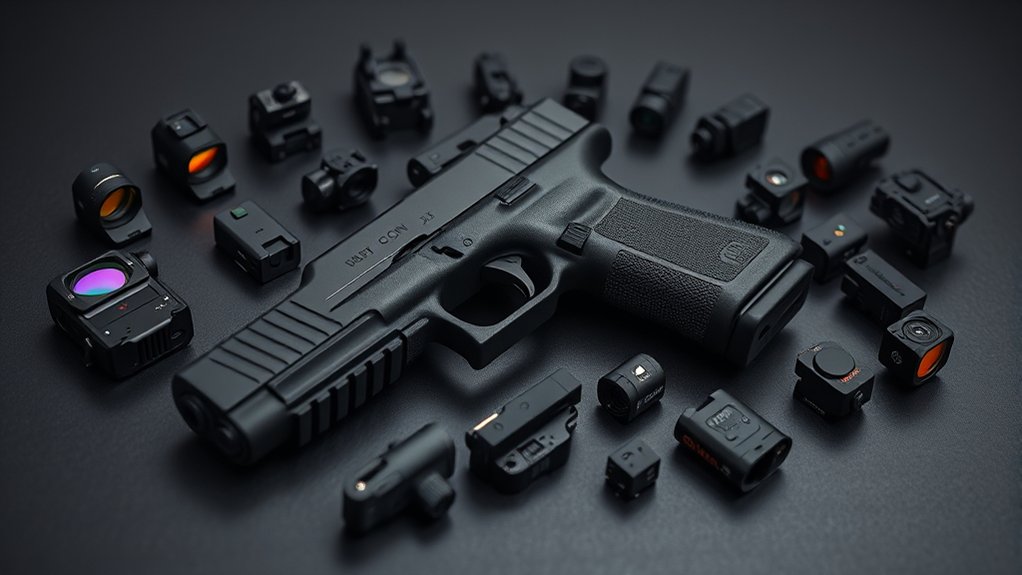 Many optics for the Glock 19 Gen 5 now come equipped with night vision capabilities, allowing you to aim effectively in low-light conditions without relying on external light sources. When choosing optics, look for models compatible with night vision devices to guarantee seamless integration during nighttime use.