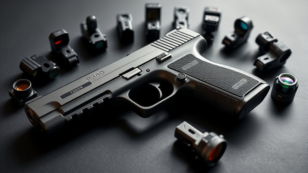 Although many optics claim compatibility with the P365 X Macro, you need to guarantee the model you choose is specifically designed for its unique slide cut and footprint. Start by confirming the optic’s mounting footprint matches the P365 X Macro’s slide cut, like the Shield RMS-C or other approved patterns.