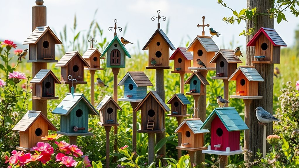 If you want woodpeckers or owls, bigger, deeper boxes work best. Matching the birdhouse to local species increases your chances of visits, turning your outdoor space into a lively bird sanctuary.