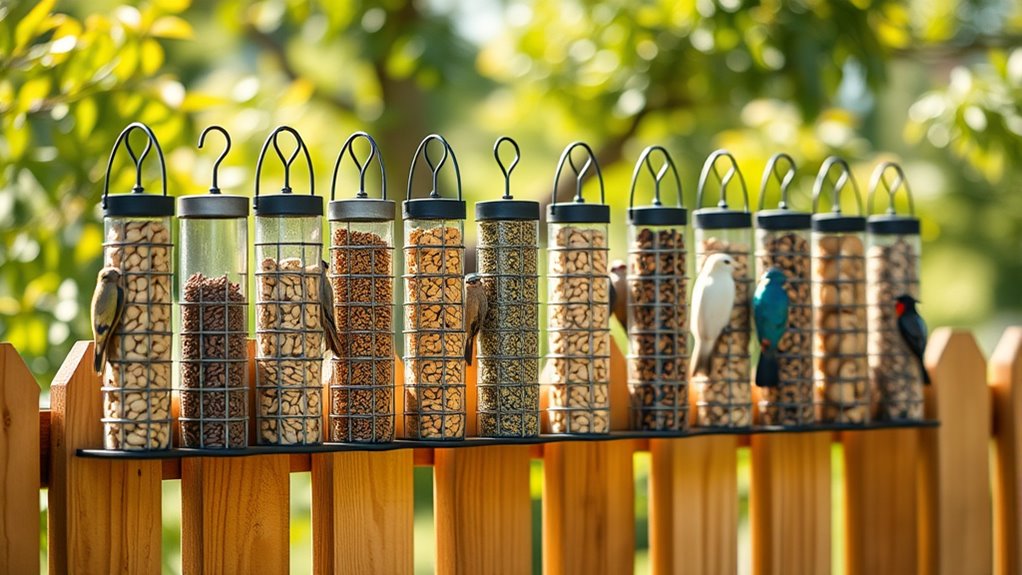 Favor models with clear seed compartments or transparent sides to easily monitor levels and refill before they run out. Opt for accessible refilling points that don’t require tools or complex steps, saving you time during maintenance. Select designs that minimize seed spillage during refilling to keep feeding areas tidy and waste down.