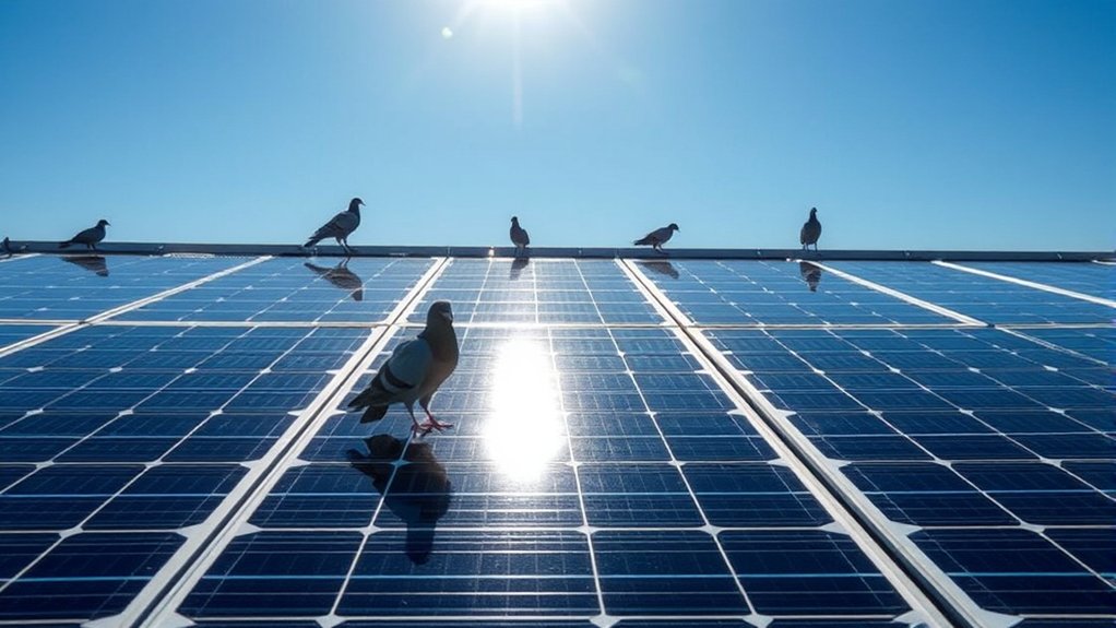 You’ll protect your panels without harming the birds or the environment, letting your solar setup flourish sustainably while keeping those feathered visitors at bay.