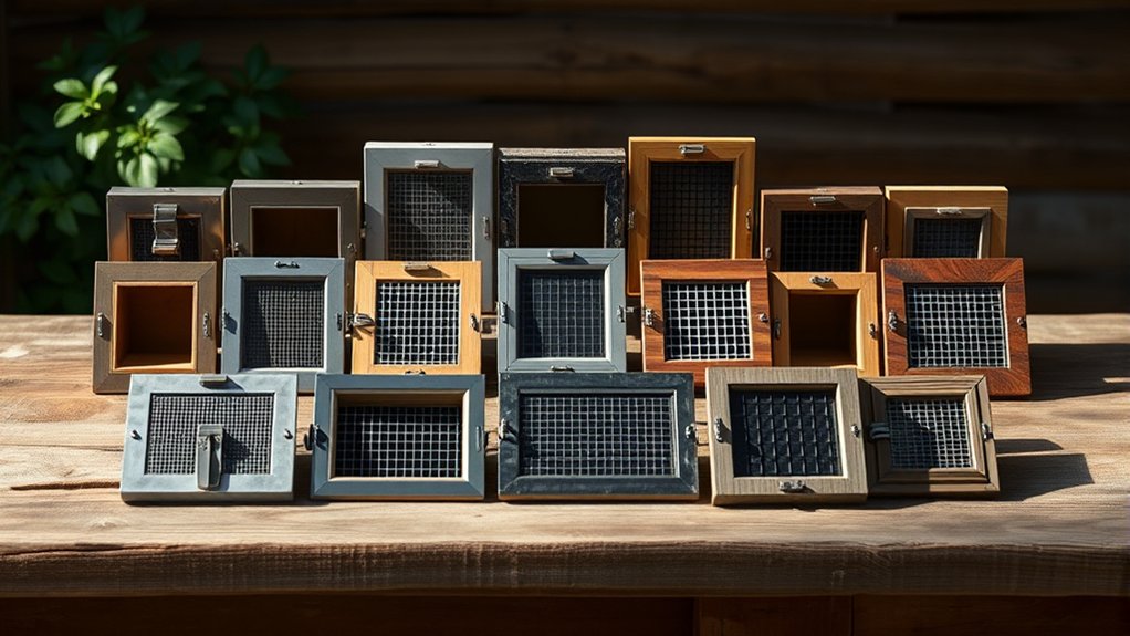 Durability plays an essential role in choosing the right trap door for capturing pigeons effectively. You want materials like high-strength iron or stainless steel that resist rust and extend the trap door’s life, especially outdoors.
