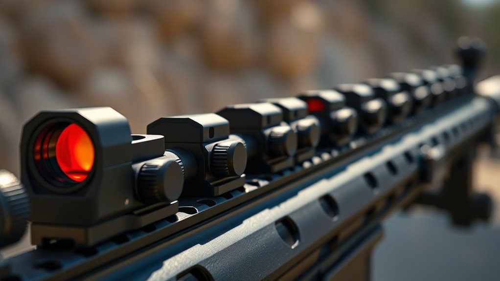Ballistic impact is a real concern when selecting piggyback red dots, especially on high-recoil calibers. You want a mount that withstands the forces generated during firing, with materials like titanium or aircraft-grade aluminum for strength and impact resistance. Confirm the mounting system securely locks the red dot in place to prevent displacement or damage from shock or impact.