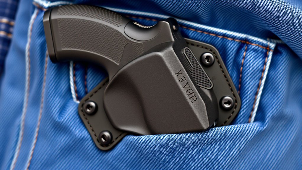 When choosing a pocket holster for your Kahr PM9, you might wonder if the easiest option truly offers the best concealment and comfort. The truth is, a well-designed holster can considerably boost your confidence and safety. While some believe that size alone matters, the right fit, material, and concealment features make all the difference.