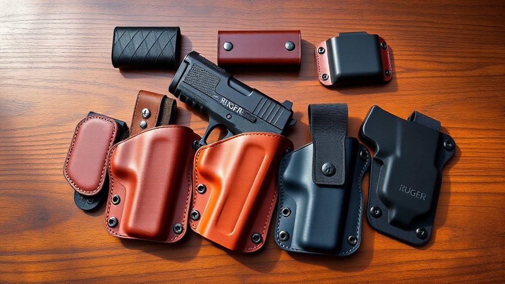 Although many factors influence your choice of a pocket holster for the Ruger LCP, material durability and comfort play crucial roles in daily carry. You want a holster made from materials that resist tearing and wear over time, like Kydex or reinforced nylon, which offer durability and a smooth surface for quick access.