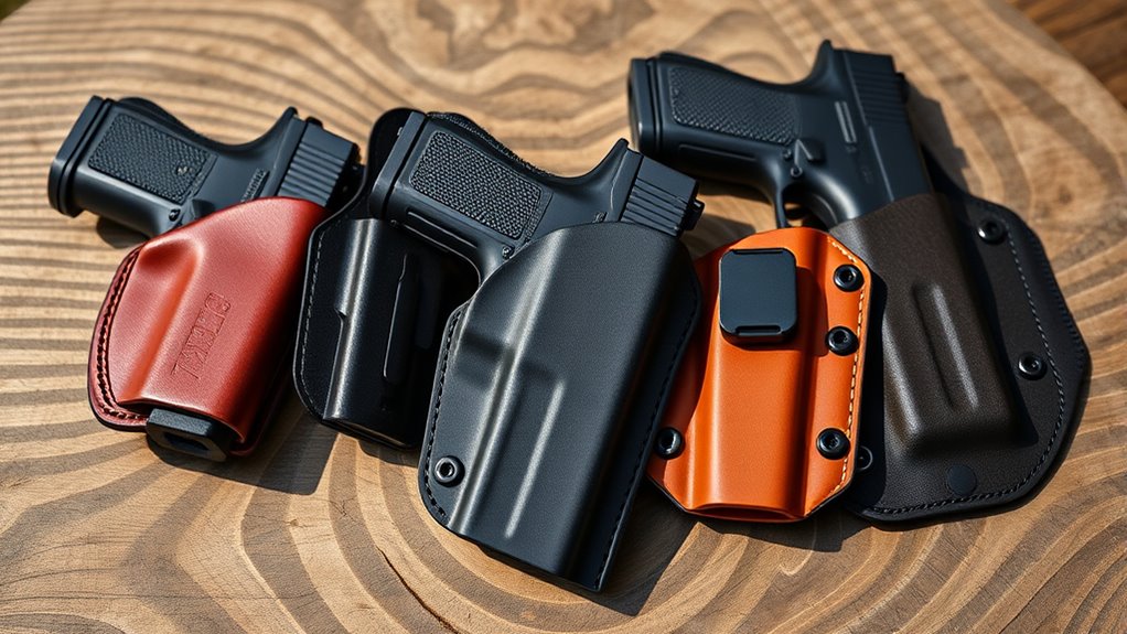 Finally, choose holsters made from durable, non-slip materials to minimize shifting and accidental exposure. Prioritizing these features ensures your Springfield Hellcat stays safe, secure, and ready when you need it.