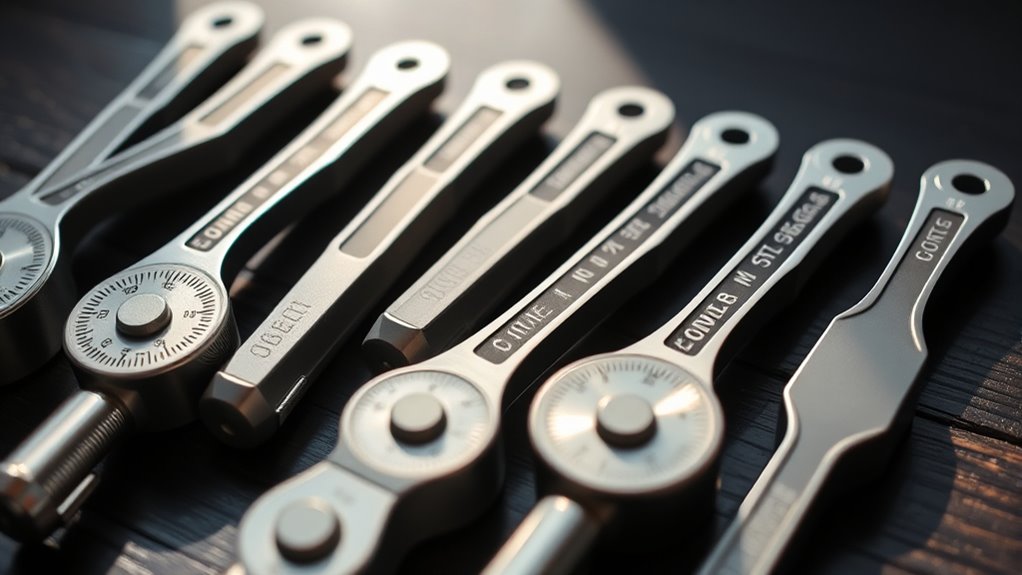Features like lock rings or detent locks are essential—they keep your settings secure and prevent accidental changes during use. You’ll also benefit from clearly marked, easy-to-use adjustment mechanisms that minimize the risk of over or under-charging.