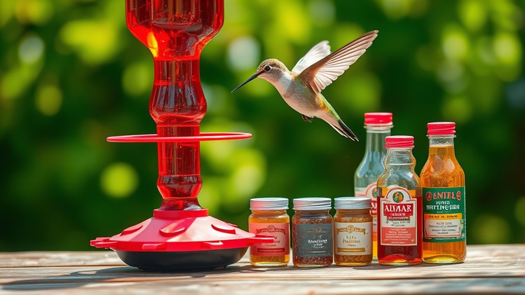 While natural ingredients are best, focus here on the nutritional makeup itself, ensuring it supplies the right energy and essential nutrients that hummingbirds need. This way, you’ll support their significance and keep them coming back to your feeder.