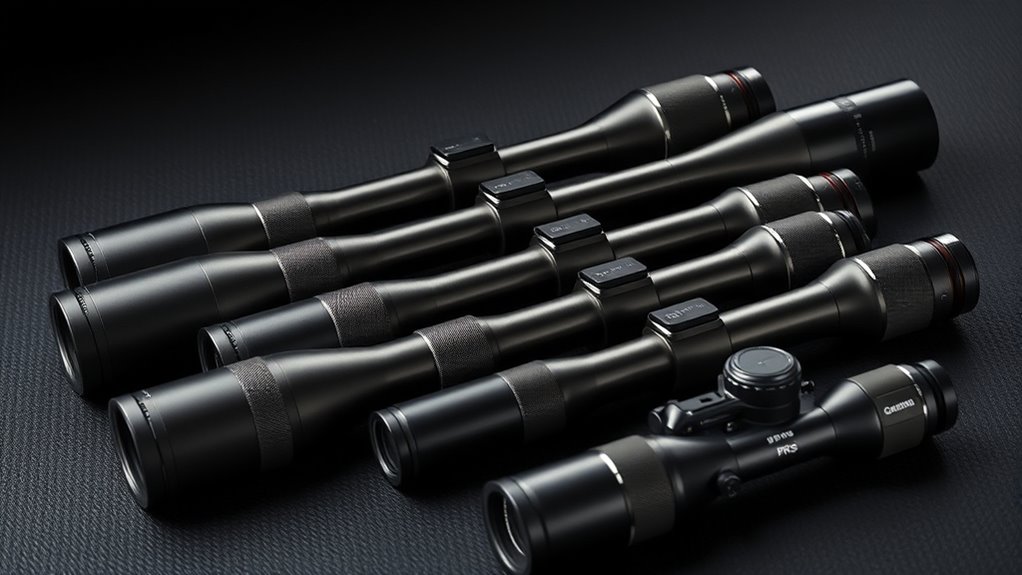 Tubes and turrets dictate how much elevation and windage you can dial, so pick a scope with a tube size that matches your needs—30mm and 34mm are the common choices for PRS setups. The tube diameter determines your overall travel, so bigger tubes offer more elevation and windage room for long-range shots.
