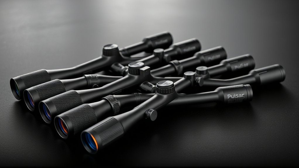 You’ll find that detection range capabilities vary widely among Pulsar thermal scopes, with some models spotting targets up to 2,500 yards away. This range depends heavily on sensor resolution and environmental conditions.