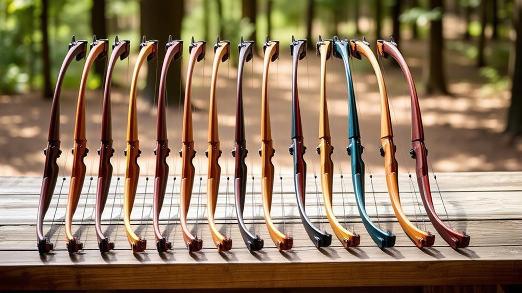 Lightweight materials like fiberglass and composite risers boost portability while keeping the bow sturdy. Many bows also include clear assembly manuals, which is a big help if you’re new to recurve shooting. Prioritizing these features guarantees your bow is not only easy to carry but also quick to set up, so you can spend more time practicing and less time fumbling with gear.