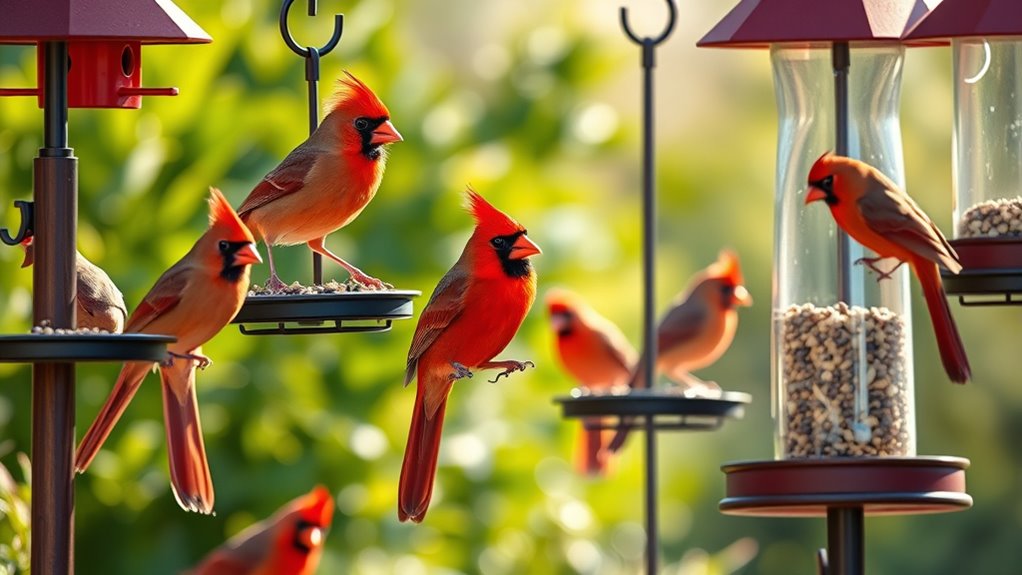Finally, aim for features that attract cardinals—clear visibility, perches, and spacing that suits their feeding habits.
