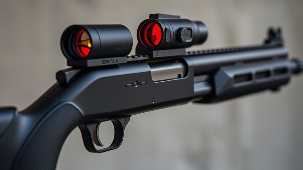 Although performance matters most, ease of installation plays a crucial role when picking a red dot sight for your Beretta 1301 Tactical. You’ll want a sight with a mounting system compatible with your shotgun, like Picatinny rails or specific shotgun mounts, to guarantee a secure fit.