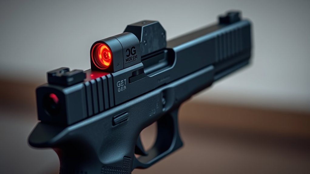 To achieve pinpoint accuracy with your Glock 21 Gen 5, you’ll want a red dot sight that offers precise windage and elevation adjustments, usually measured in MOA per click. This lets you zero in on your target with exactness.