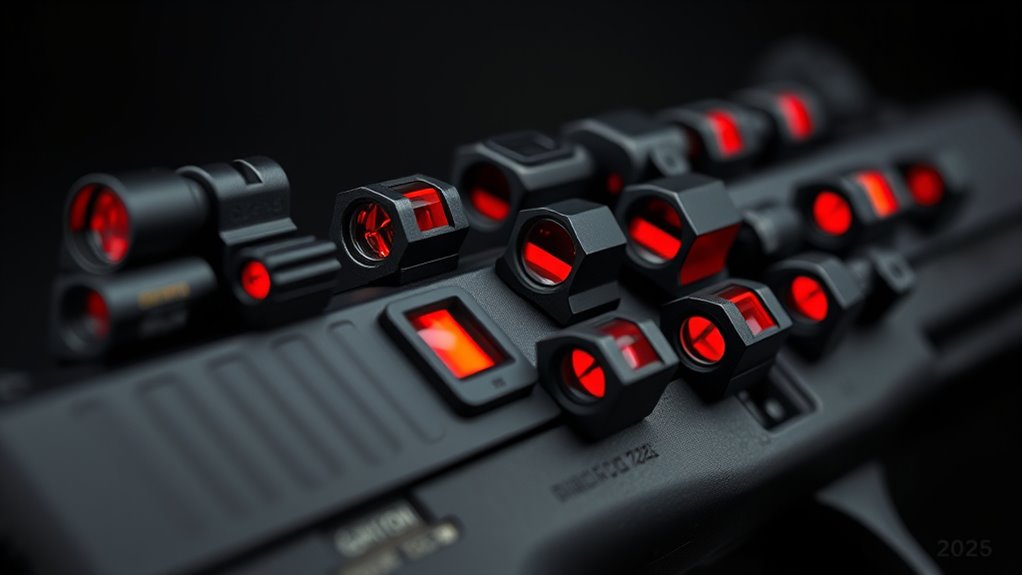 Mounting footprint compatibility is critical for Glock 23 Gen 4 setups, so you’ll want a red dot with a Glock-specific footprint or a plate that matches the Glock MOS system for secure attachment. Confirm the sight’s footprint aligns with the chosen pattern (Glock, RMR, or RMSc) to guarantee proper fit and reliable zero retention.