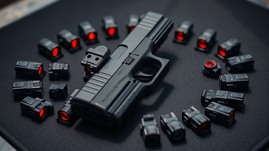 Also, confirm whether the sight uses a universal or Glock-specific footprint, as this affects how easily you can mount it. Opt for sights with built-in or attachable Picatinny or RMR footprint mounts for more versatile installation. Finally, consider quick-detach or tool-less mounting systems—they simplify attachment and removal, letting you switch setups quickly without hassle.