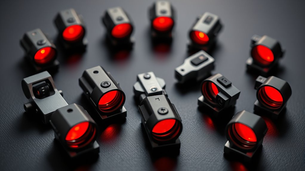 The size of the reticle matters—smaller MOA reticles sharpen precision, while larger ones speed up target acquisition. Many sights also feature customizable brightness and multiple reticle patterns, adapting to different lighting and scenarios. Plus, most reticles are parallax-free with unlimited eye relief, ensuring consistent aim regardless of your eye’s position.