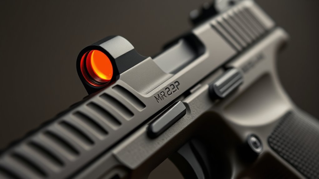 Illumination options dramatically affect usability, especially in varying light. You’ll find sights with multiple brightness settings, from low to high, so you can tailor visibility to your environment. Some models add night vision compatibility, letting you run specialized illumination in extreme low light.