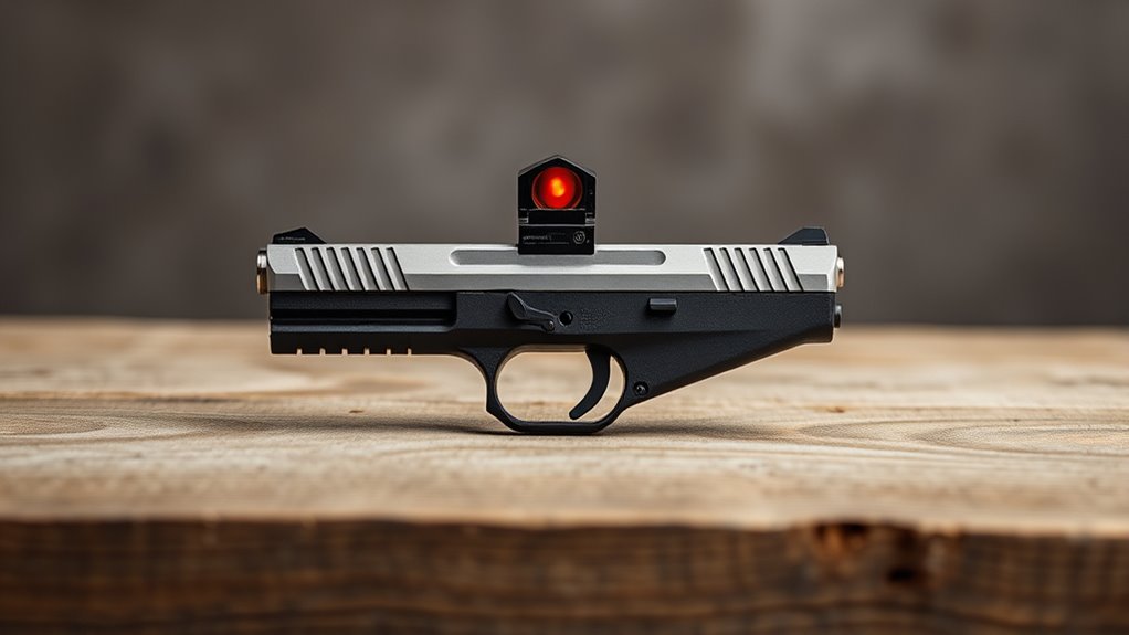 The sight’s aspherical lens delivers clear, distortion-free images with zero parallax, enhancing target acquisition through a large viewing window. Its lightweight design, weighing approximately 27.5 grams, keeps your handgun balanced and easy to maneuver during extended shooting sessions.